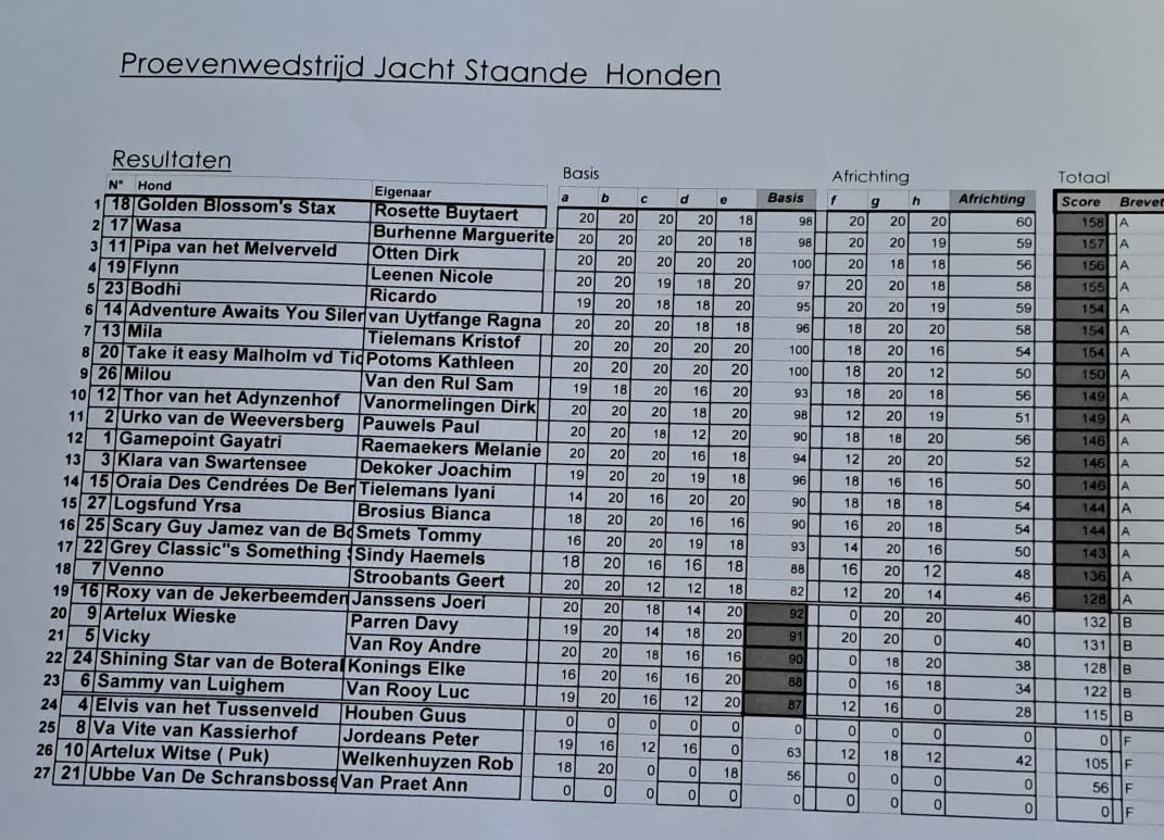 Uitslag Map proeven 2023 Hasseltse hondenschool Staande Honden: